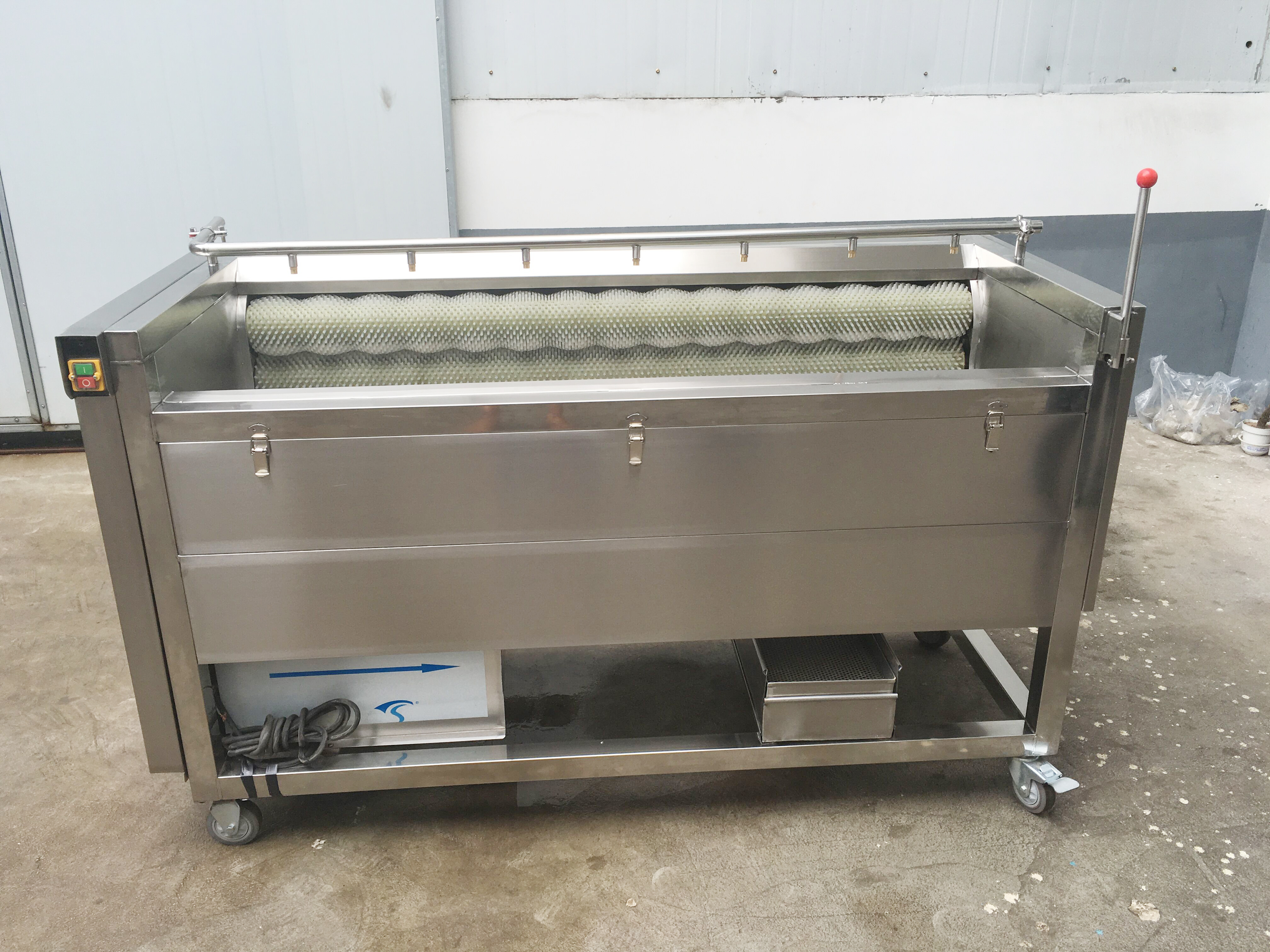 土豆清洗去皮机,莲藕清洗去皮机,红薯/地瓜清洗去皮机,萝卜清洗机, 芋头清洗机, 部分水果清洗,材质:整机全不锈钢材质,毛刷分硬毛刷和软毛刷。